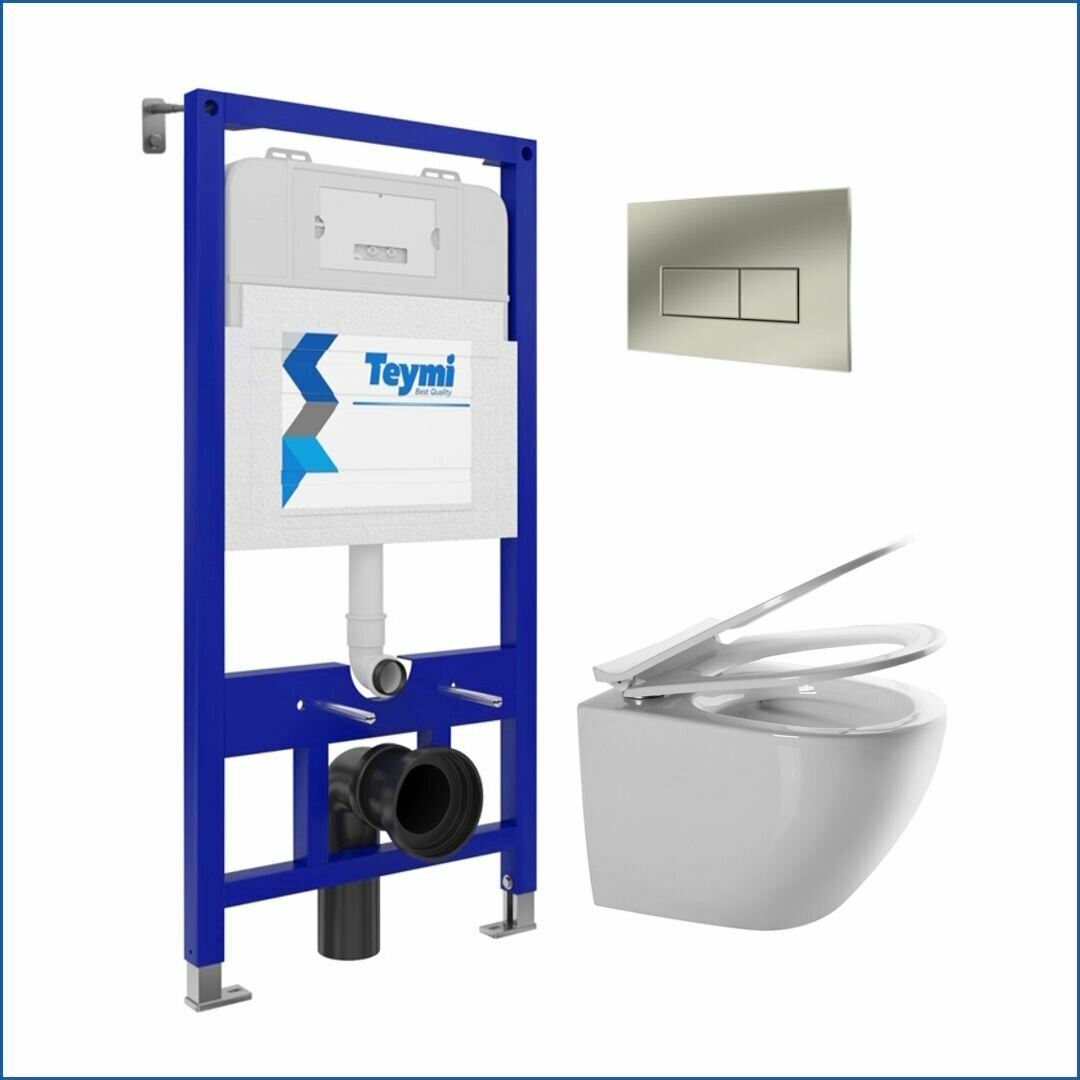 Инсталляция с унитазом комплект 5 в 1 Teymi унитаз подвесной безободковый Lina Media кнопка нержавеющая сталь F13451 30 555 ₽