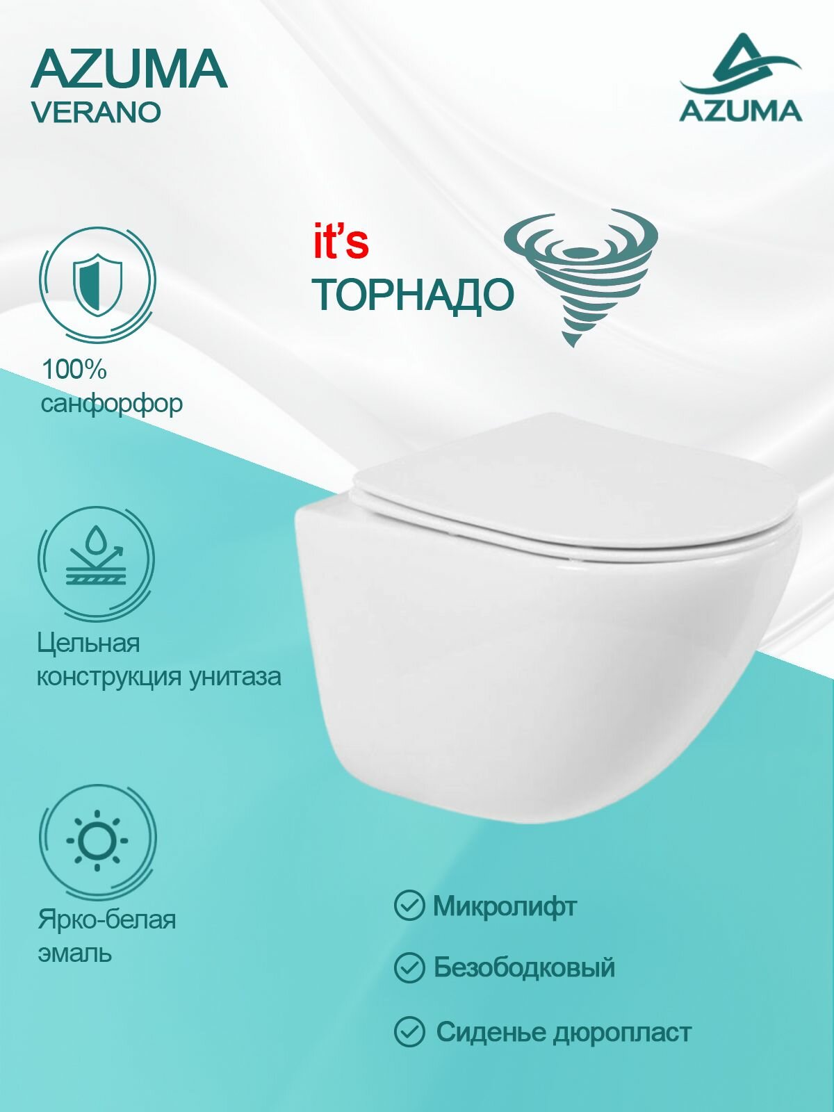 Унитаз AZUMA "Primavera" AZU025.01 Tornado 3.0 Slim25 , безободковая система, с инсталляцией 30 599 ₽