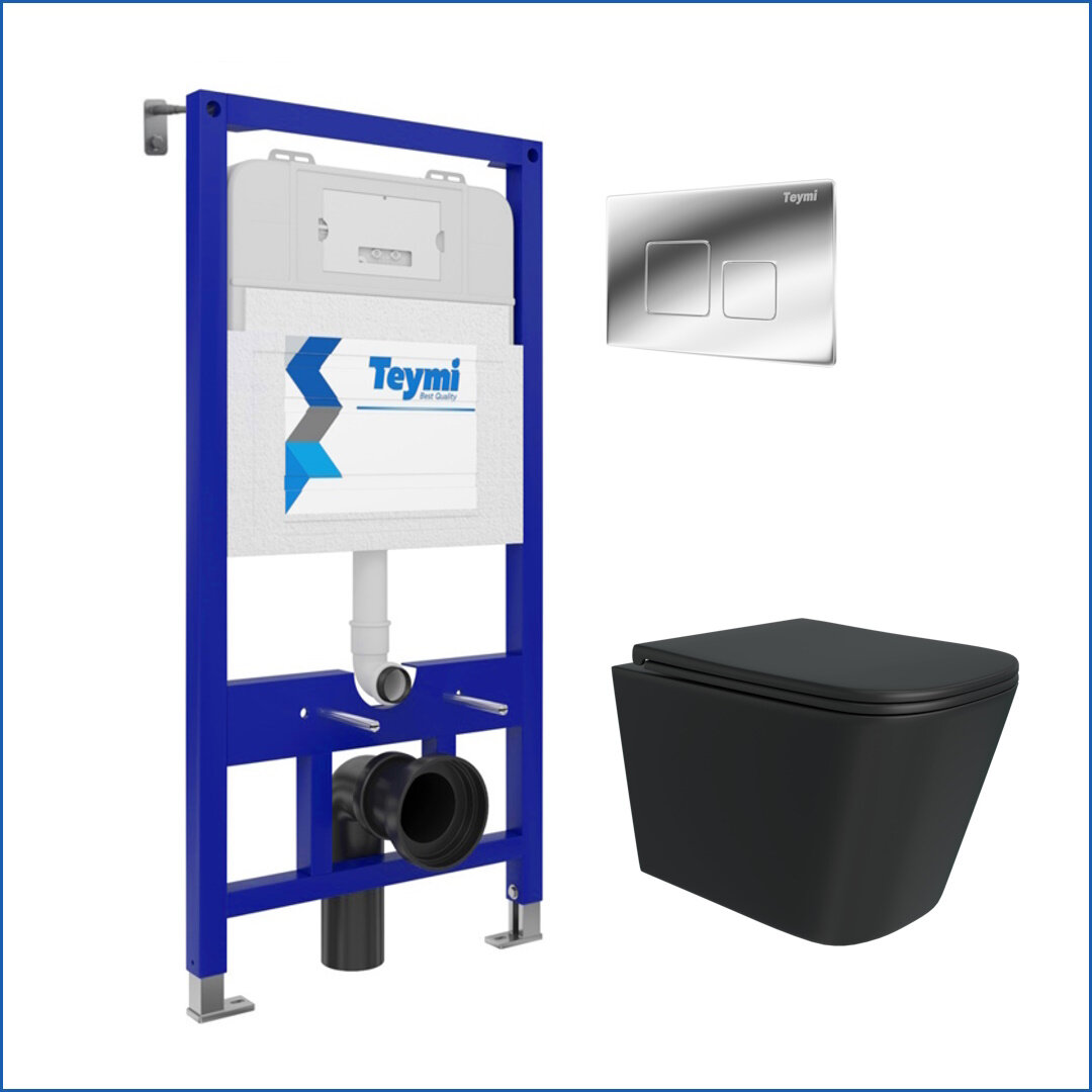 10 цен на Инсталляция с унитазом комплект 5 в 1 Teymi унитаз подвесной безободковый черный Helmi Black кнопка хром T70795