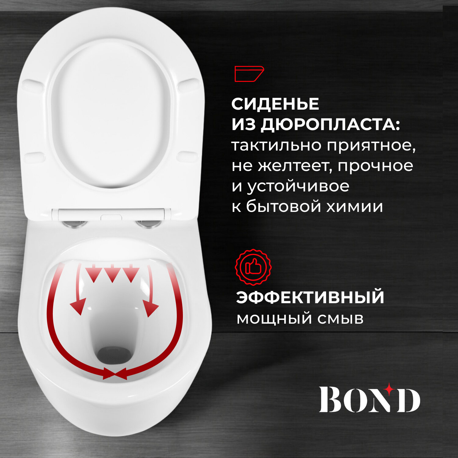 Подвесной унитаз безободковый с сиденьем с микролифтом BOND F10-10 информация: