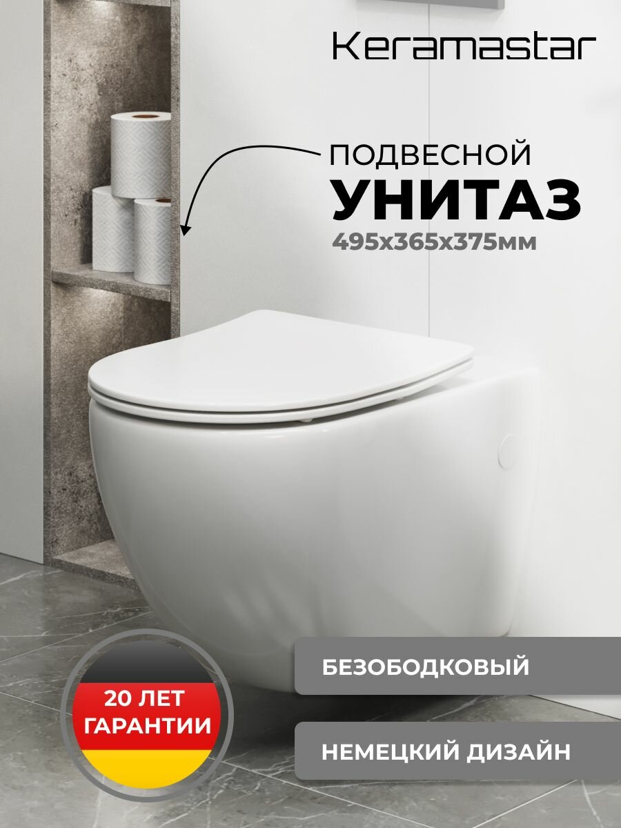 Приставной унитаз Ceruttispa MARMOLADA F (555х365х410) безободковый, микролифт, белый