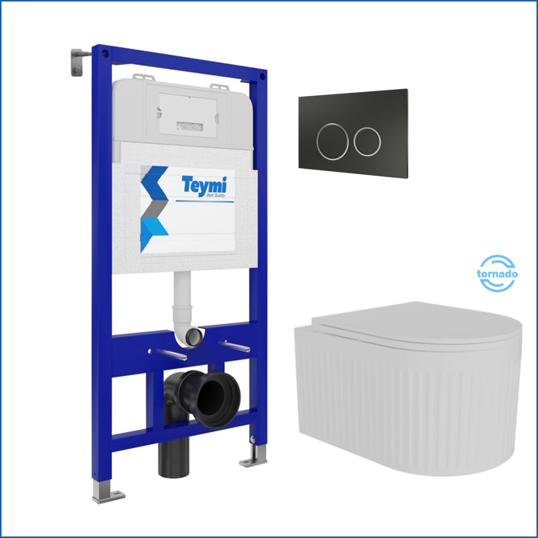Инсталляция с унитазом комплект 5 в 1 Teymi унитаз подвесной безободковый торнадо Martta Vortex кнопка черная / хром F14524 информация: