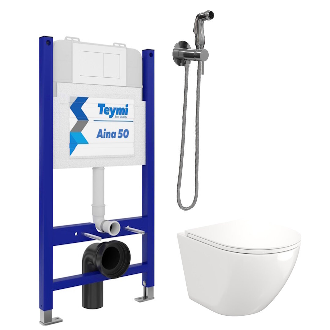 Инсталляция с унитазом 6 в 1 Teymi унитаз подвесной безободковый Lina S кнопка хром гигиенический душ хром F08272 35 772 ₽