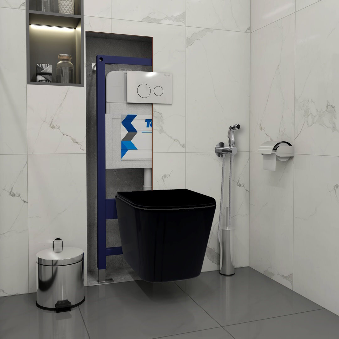Отзывы на Инсталляция с унитазом комплект 6 в 1 Teymi унитаз подвесной безободковый черный Helmi Black кнопка хром гигиенический душ хром F08391