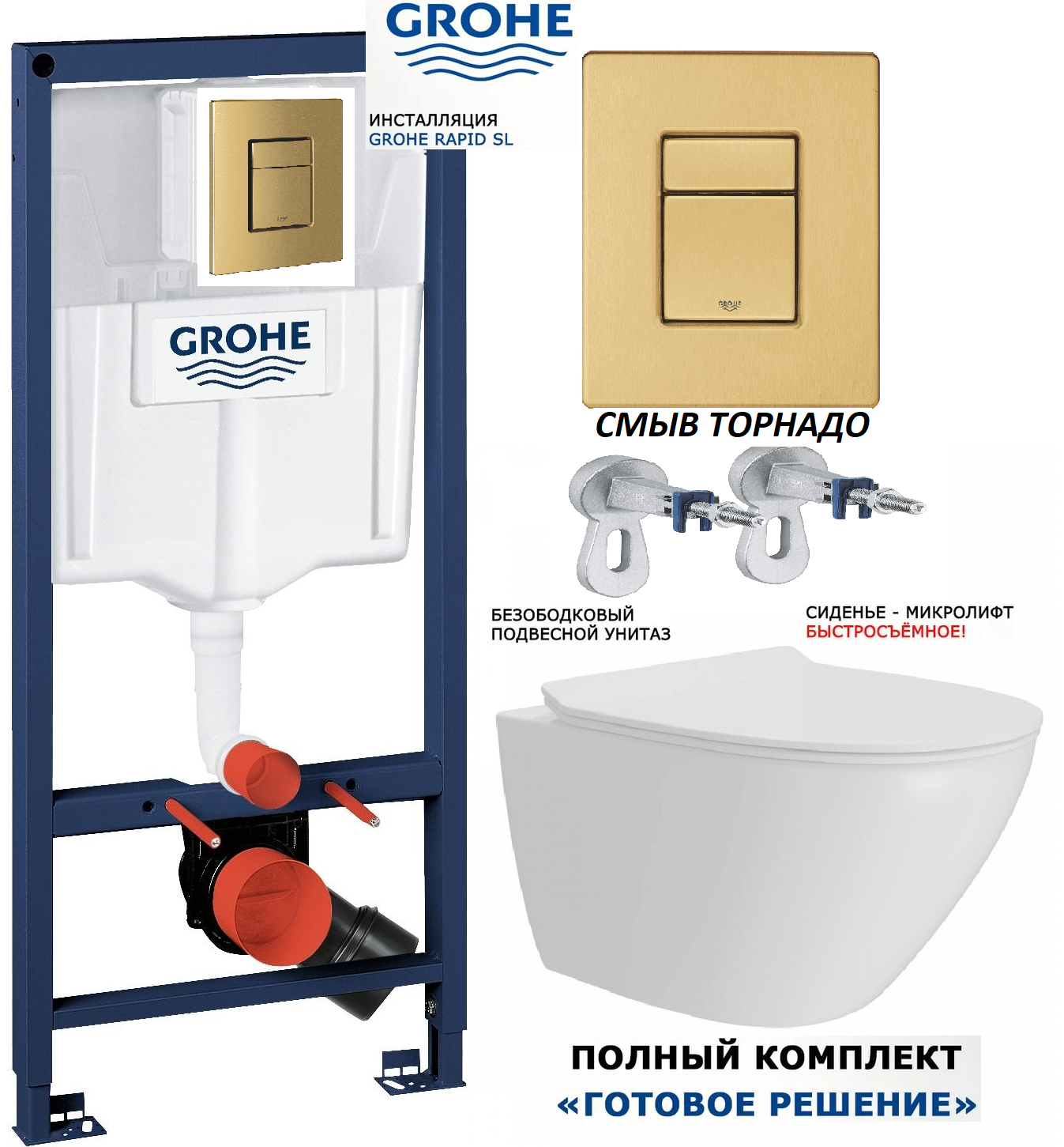 10 цен на Комплект: Инсталляция Grohe Rapid SL 38732GNO золото мат.+ Унитаз подвес. Lengitown Luna с сиденьем микролифт
