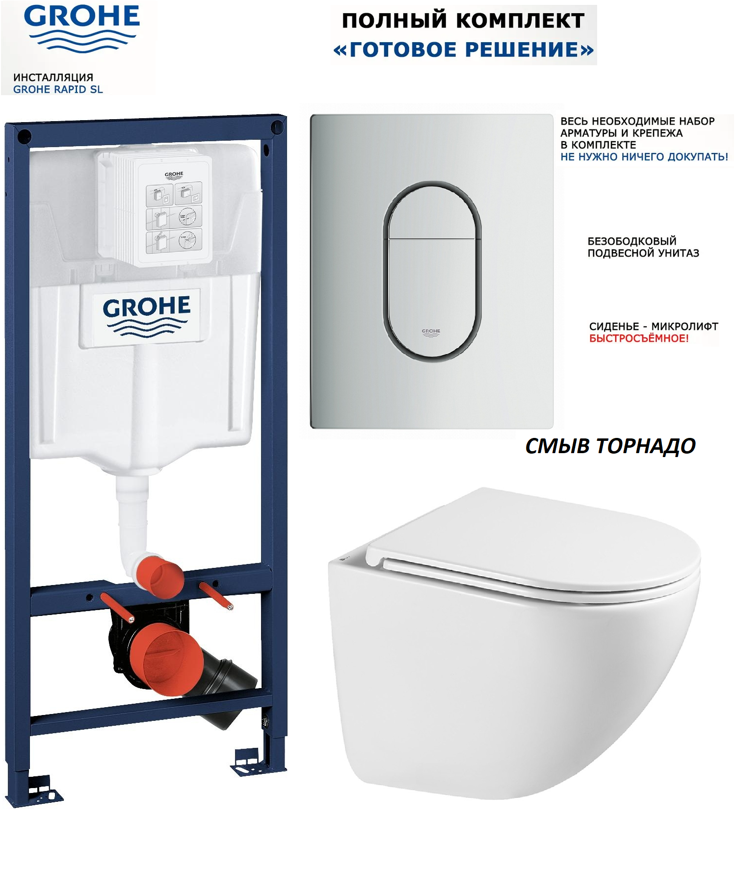 Готовый набор инсталляции GROHE Rapid SL с кнопкой 38844P00 хром мат. + Унитаз Lemark GLAZER смыв вихревой Торнадо 3.0 информация: