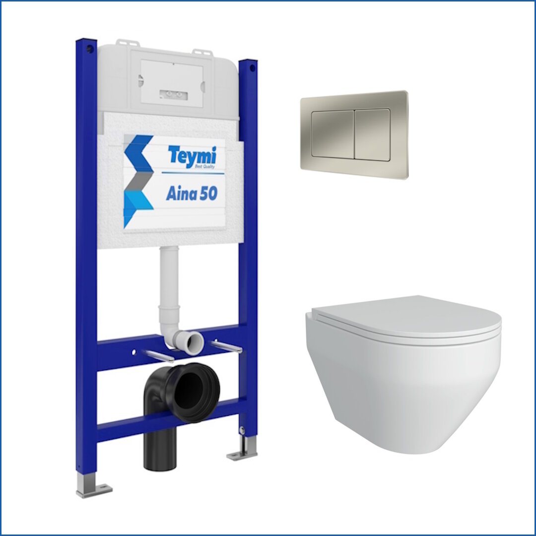 Инсталляция с унитазом комплект 5 в 1 Teymi унитаз подвесной безободковый Demi кнопка нержавеющая сталь F13496 информация: