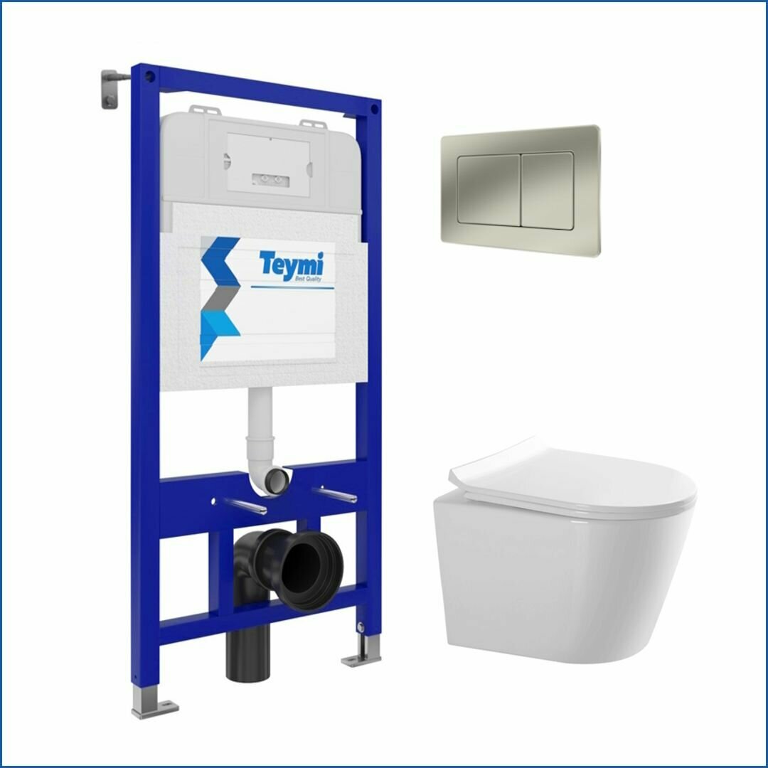 10 цен на Инсталляция с унитазом комплект 5 в 1 Teymi унитаз подвесной безободковый Solli Pro кнопка нержавеющая сталь F15736
