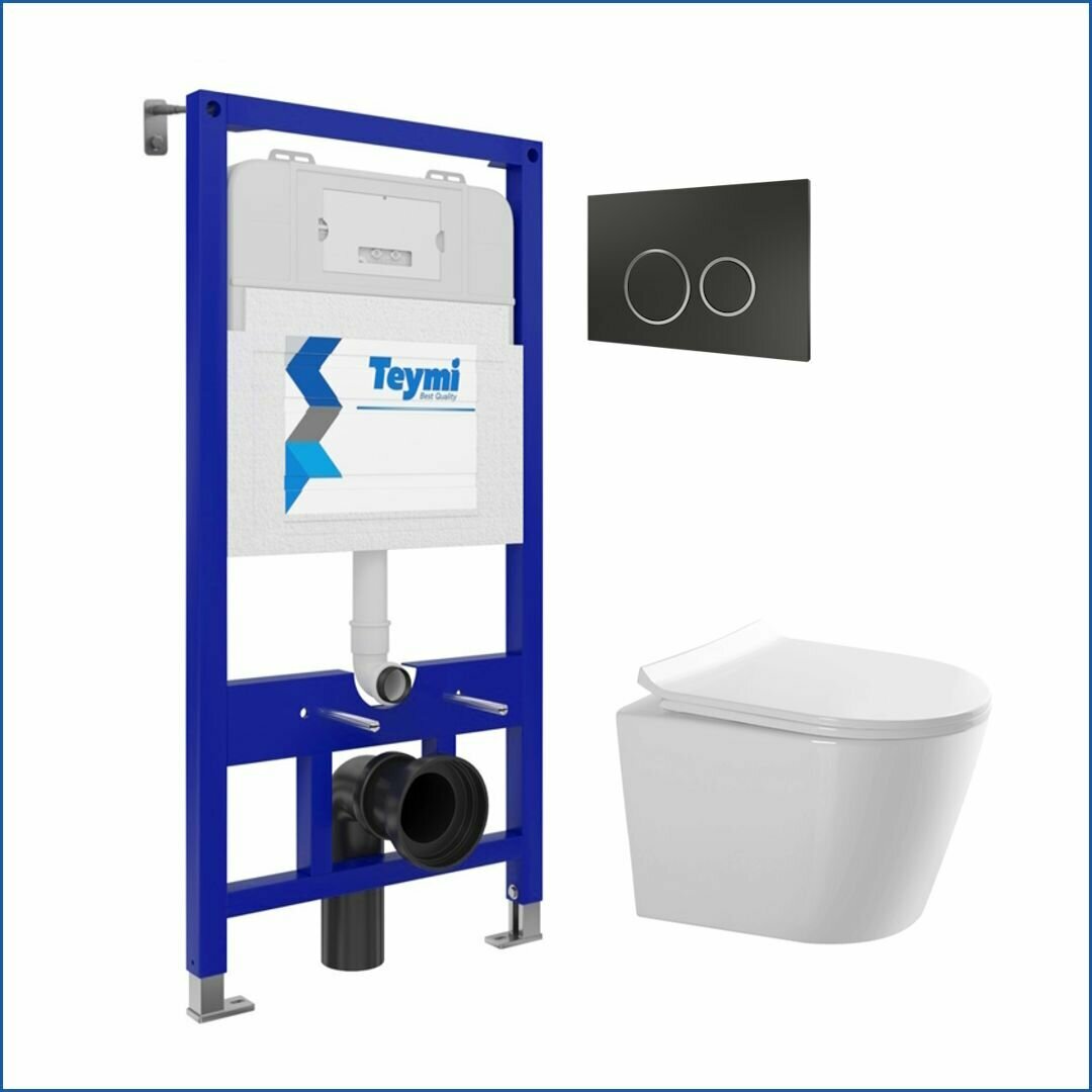 Инсталляция с унитазом комплект 5 в 1 Teymi унитаз подвесной безободковый Solli Pro кнопка черная / хром F15731 информация: