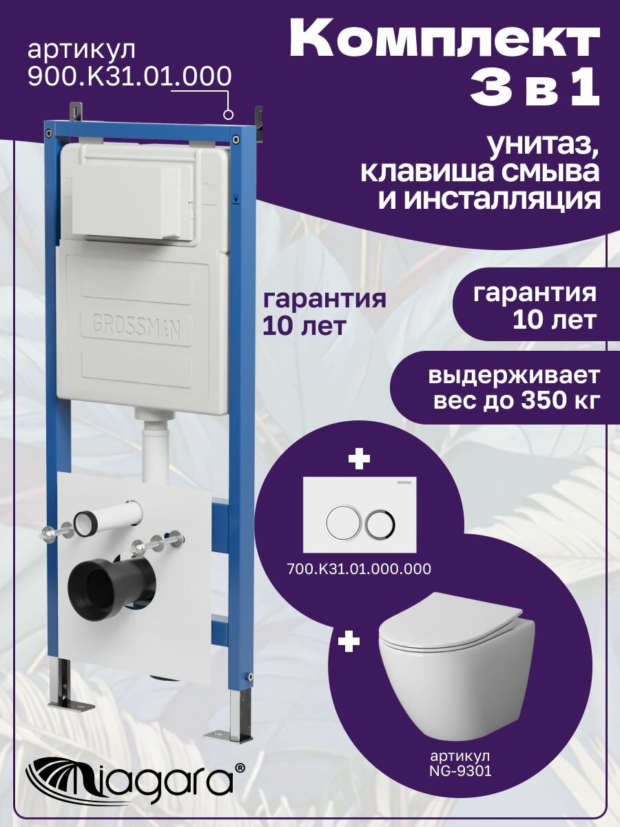Комплект 3 в 1: Унитаз NG-9301 + Инсталляция 900. K31.01.000 + Кнопка 700. K31.01.000.000 информация:
