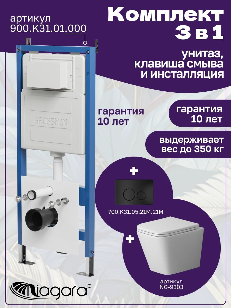 Комплект 3 в 1: Унитаз NG-9303 + Инсталляция 900. K31.01.000 + Кнопка 700. K31.05.21M.21M информация: