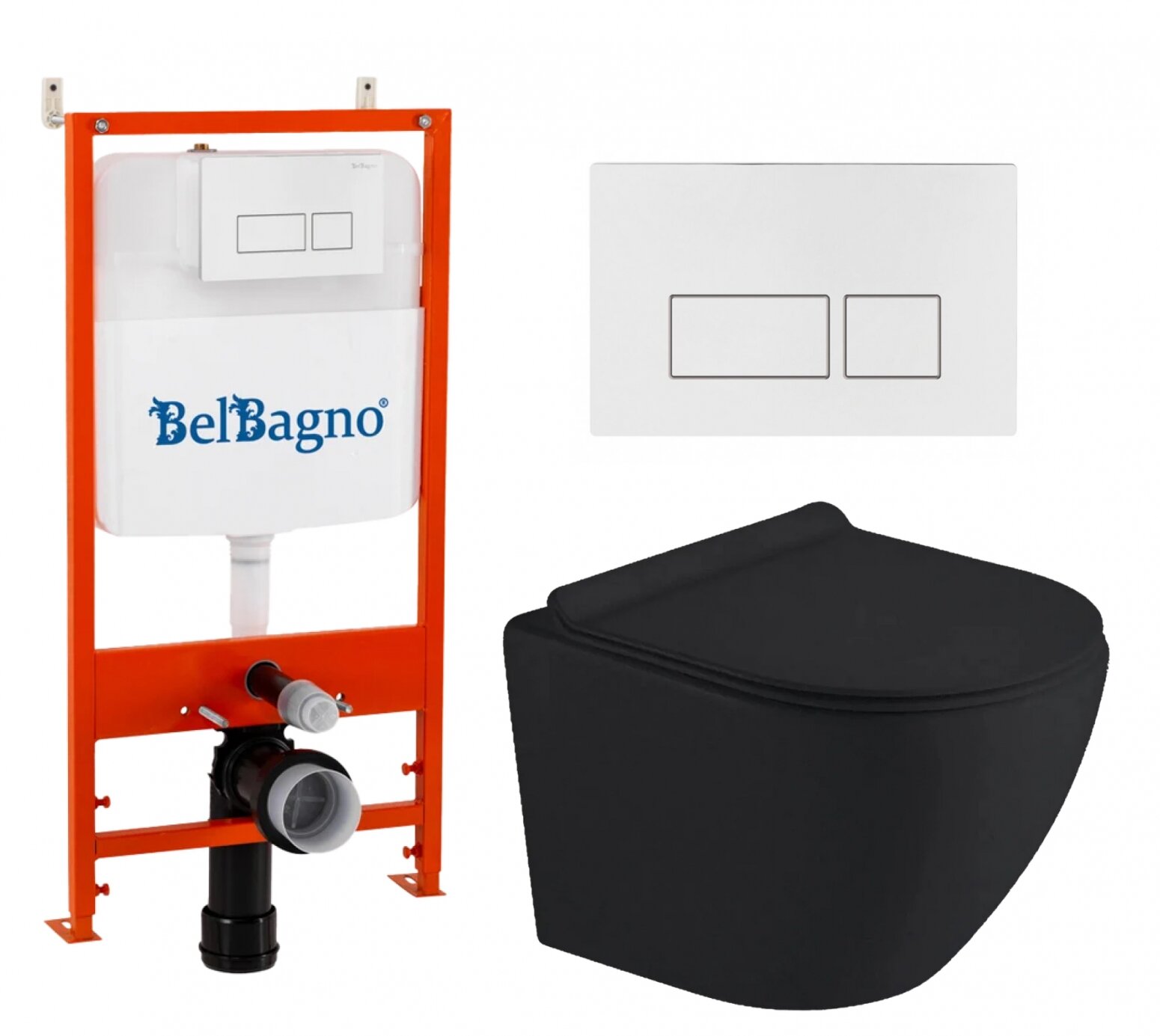 10 цен на Комплект 3 в 1 инсталляция BelBagno BB026/BB042BL + Унитаз подвесной Timo Kulo TK-403MB + кнопка белая глянцевая