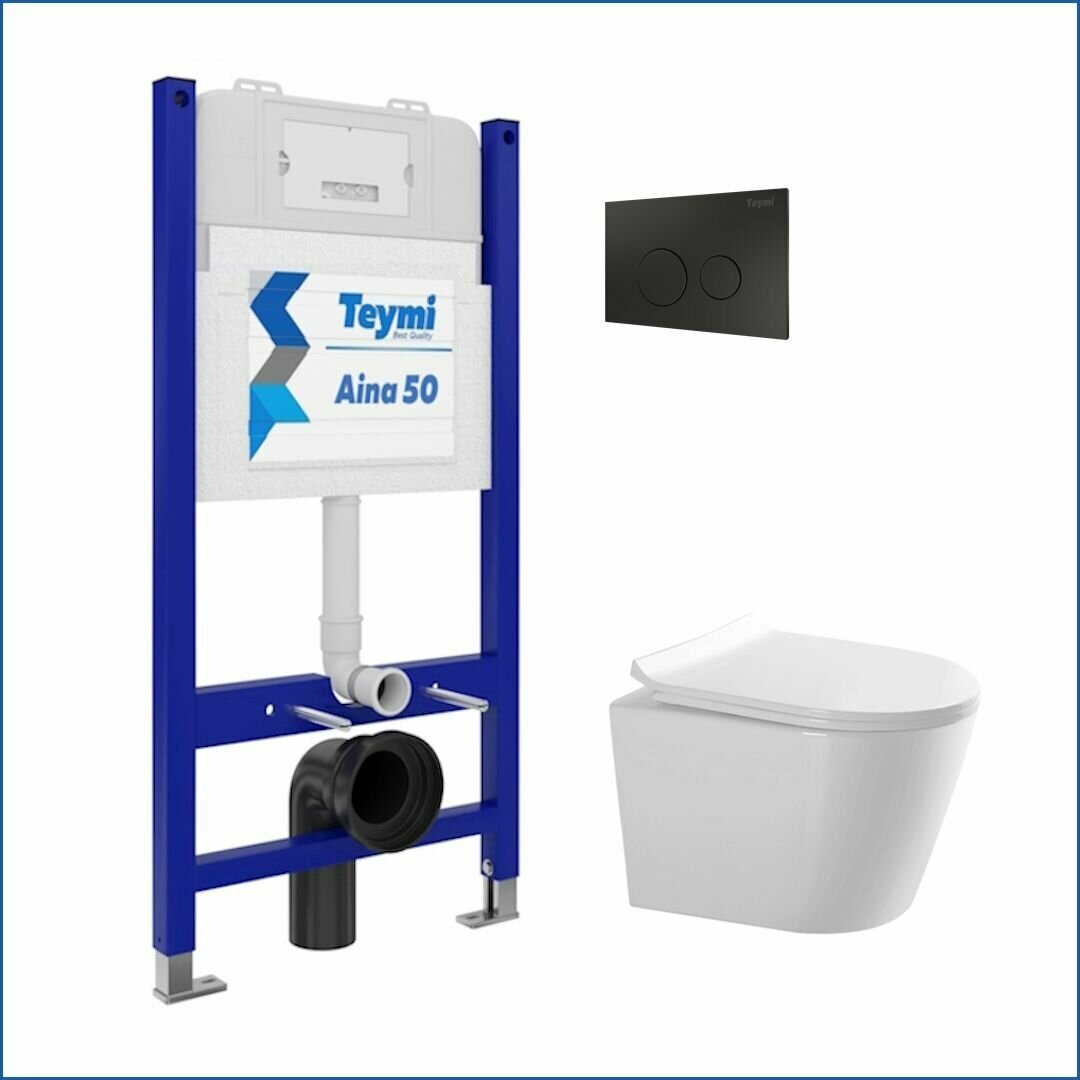 Отзывы на Инсталляция с унитазом комплект 5 в 1 Teymi унитаз подвесной безободковый Solli Pro кнопка черная F15750