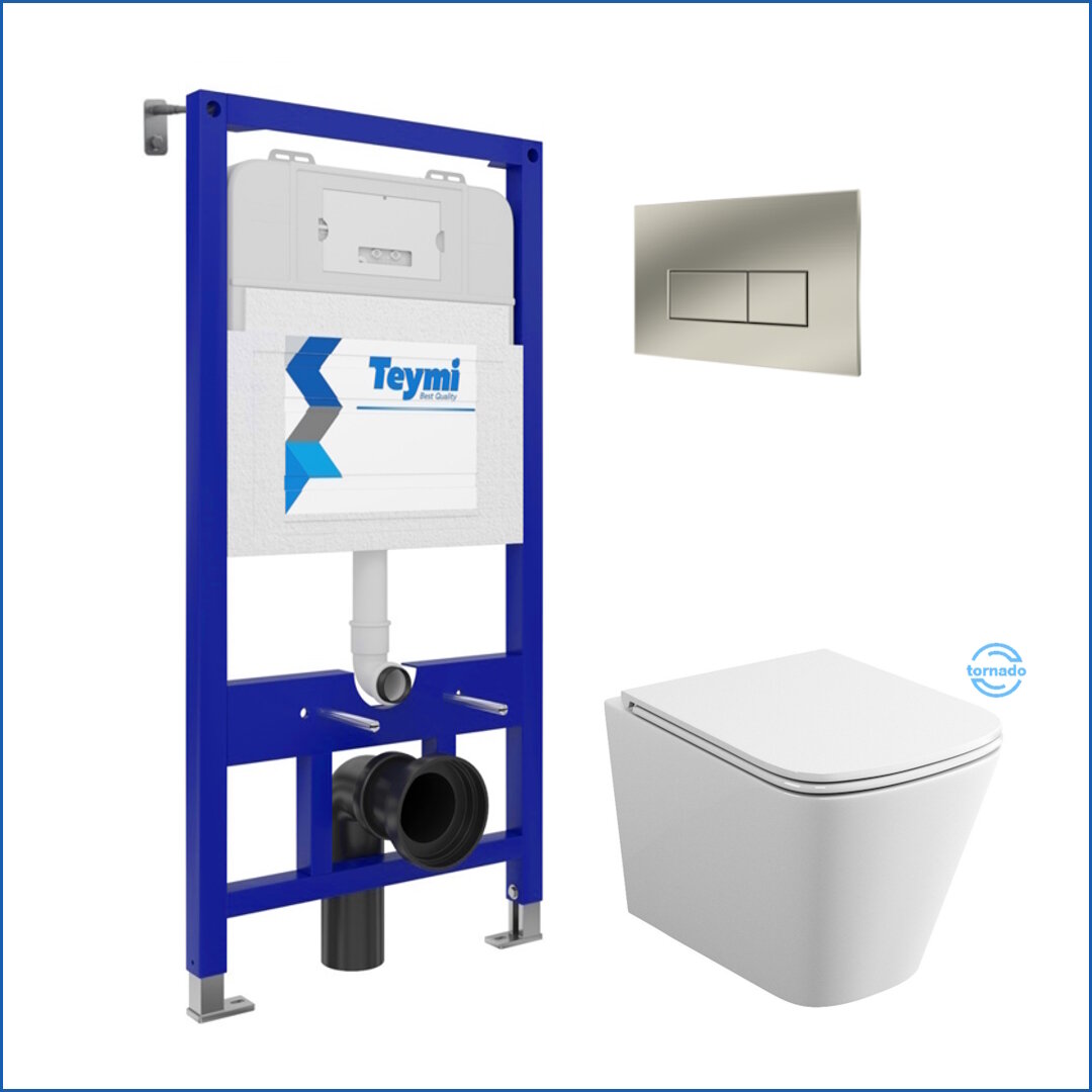 Инсталляция с унитазом комплект 5 в 1 Teymi унитаз подвесной безободковый торнадо Helmi Vortex кнопка нержавеющая сталь F13301 информация: