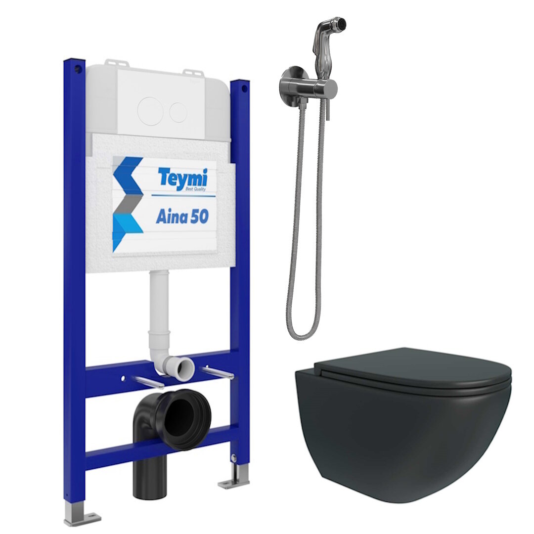 Инсталляция с унитазом комплект 6 в 1 Teymi унитаз подвесной безободковый черный Lina S Black кнопка белая гигиенический душ хром F08500 31 862 ₽