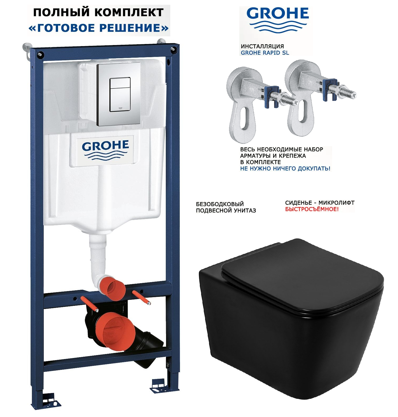 10 цен на Готовый комплект: Инсталляция Grohe Rapid SL 38772001 хром квадрат + Унитаз подвесной BelBagno Ardente с сиденьем