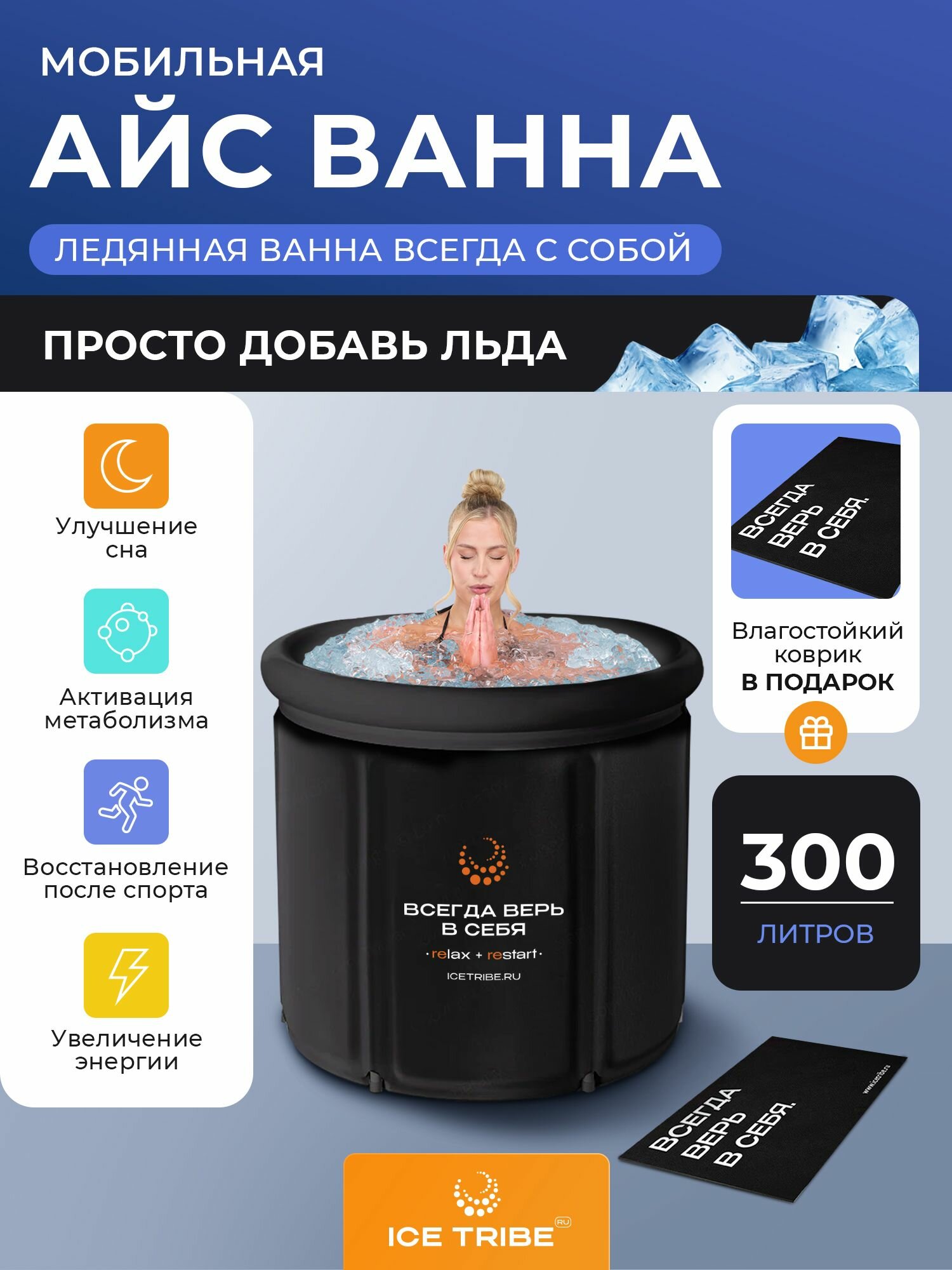 Отзывы на Комбо Мобильная Айс Бочка с резиновым ковриком, купель для льда, ледяная ванна от ICETRIBE