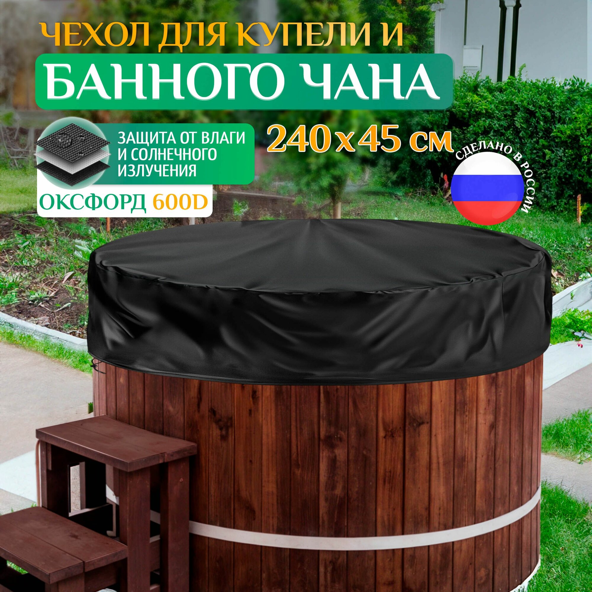 Чехол для купели Fler, водонепроницаемый, 240 х 45 см, черный информация:
