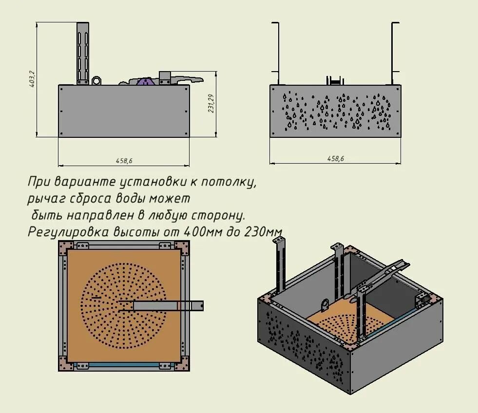 Обливное устройство "Водопад" потолочное 20л правое Капли 29 000 ₽