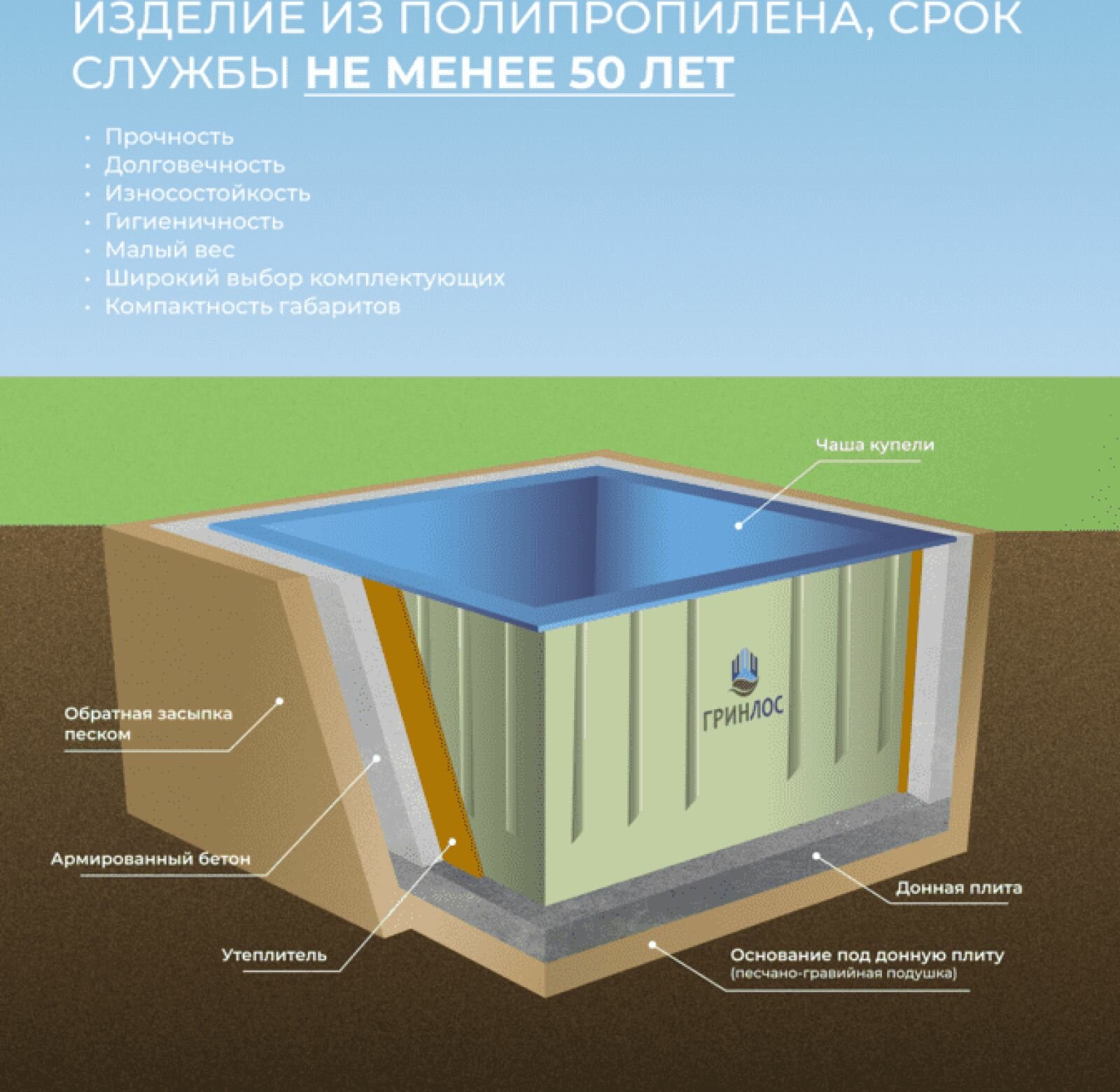 Пластиковый бассейн гринлос Купель 2000*1500*1500 Прямоугольная из полипропилена, 4.5 м3 информация: