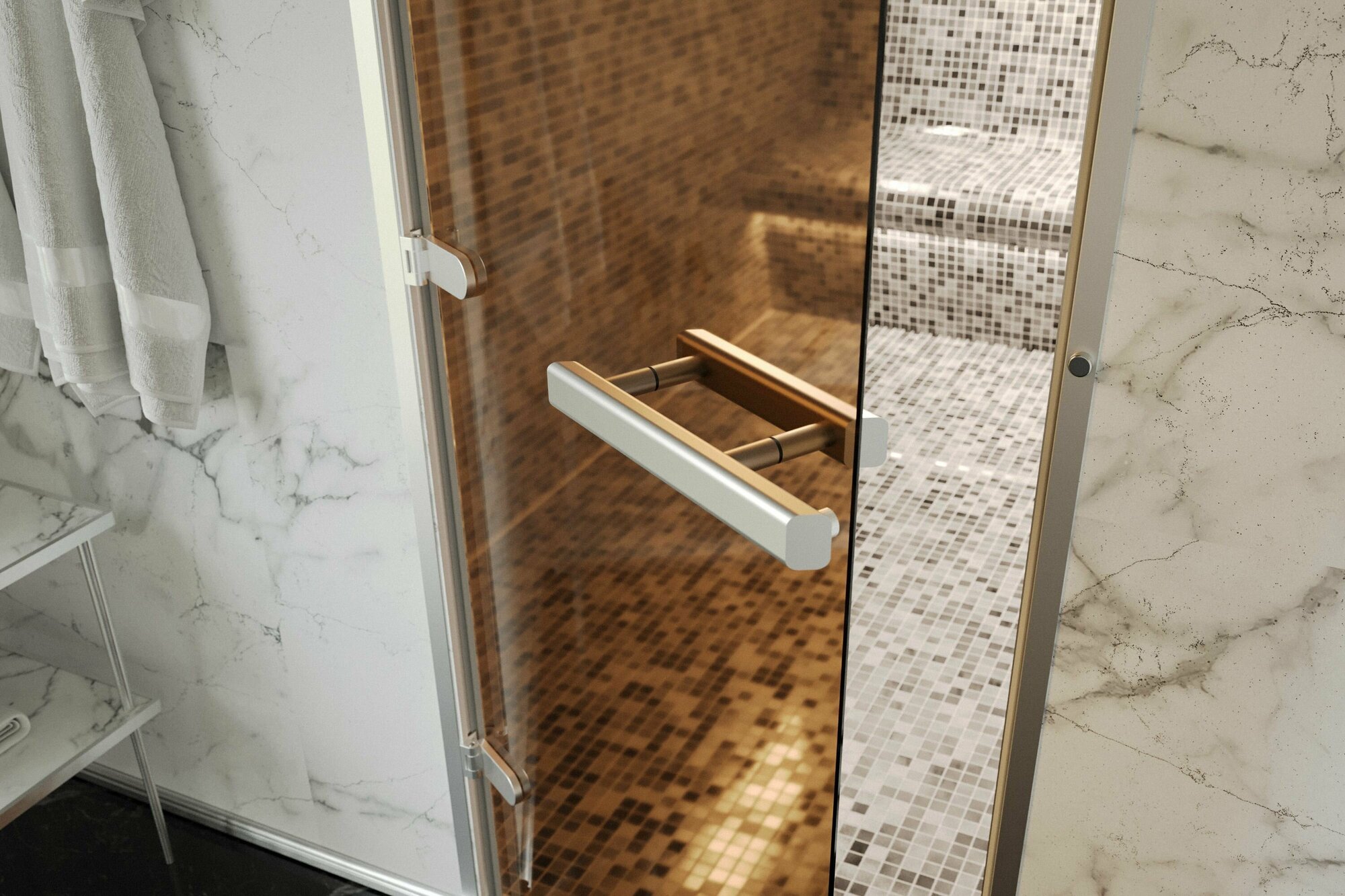 Отзывы на Дверь для хамам и сауны Gratec Estri Premium, бронза прозрачная закаленное стекло 8 мм, левое открывание