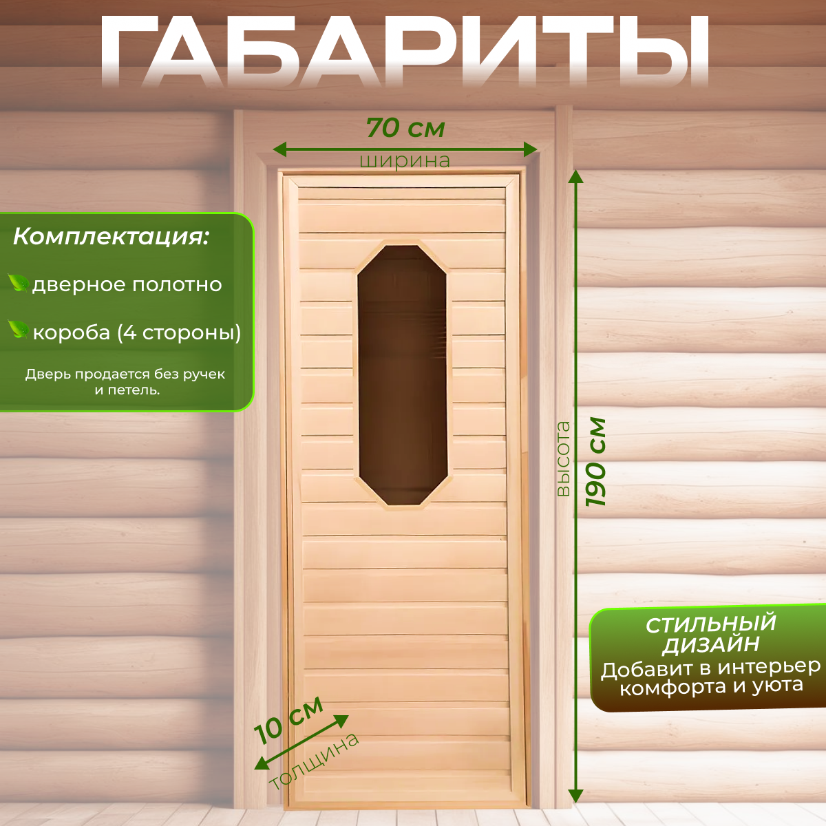 Дверь для бани и сауны, размер коробки 170х80 см, универсальная, липа