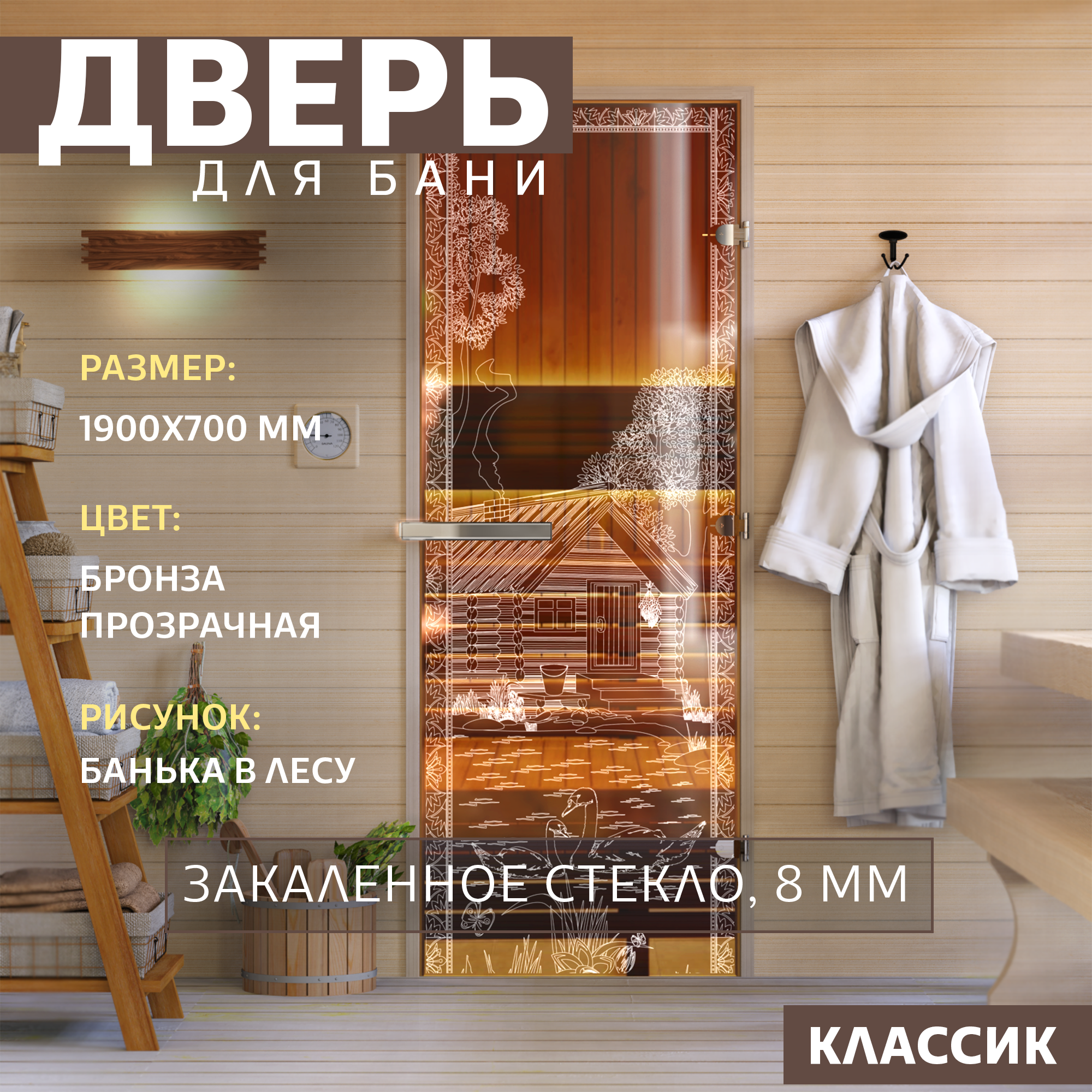 Дверь для бани "Банька в лесу бронза" 1900х700 мм Правая (петли справа) информация:
