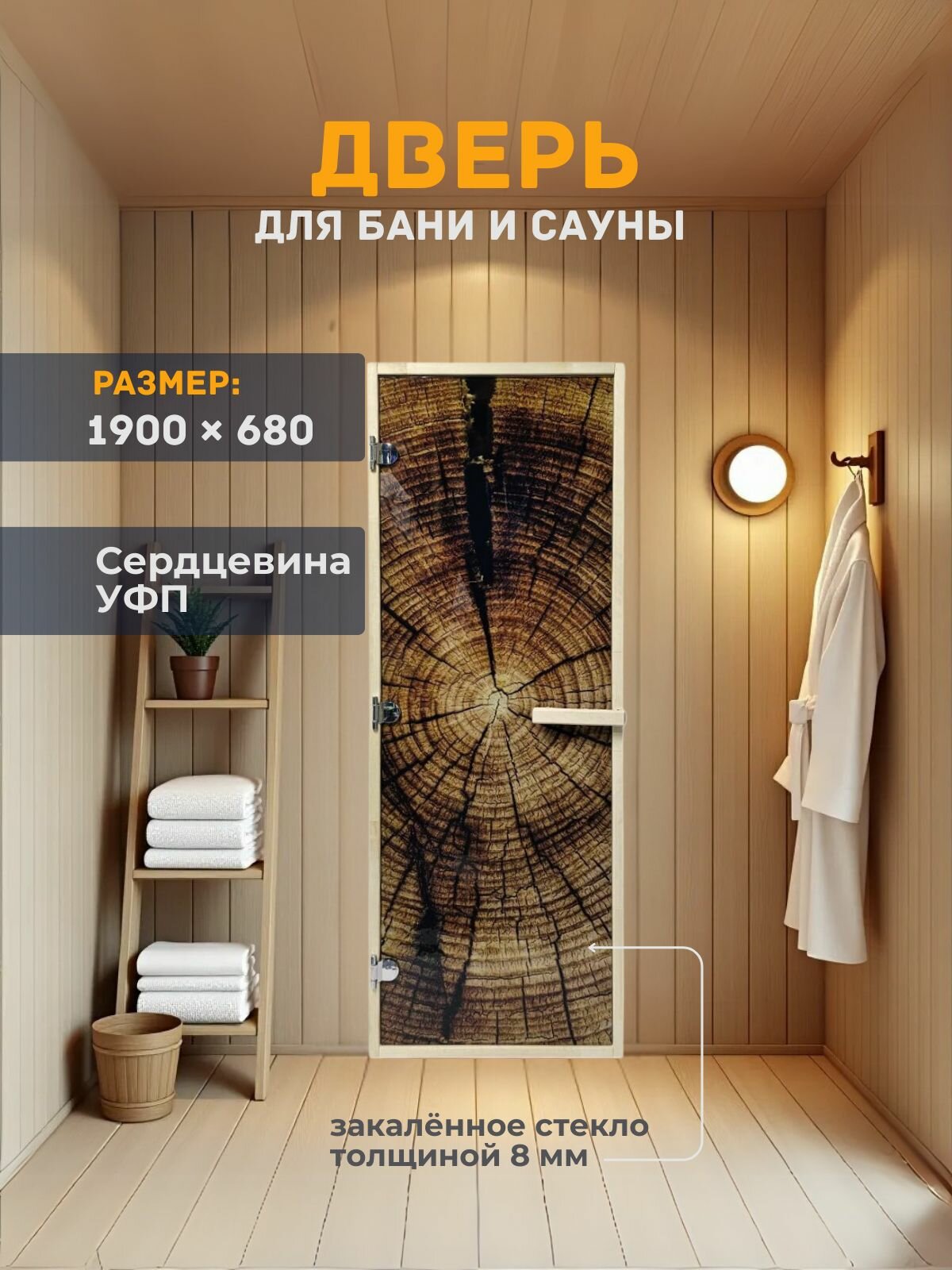 Дверь для бани/сауны 1900х680 8мм Сердцевина УФП информация: