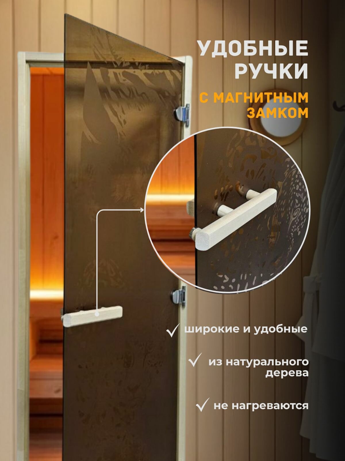 Дверь для сауны Aquaviva, 1890х690 мм, стекло 6 мм (левая), цена - за 1 шт