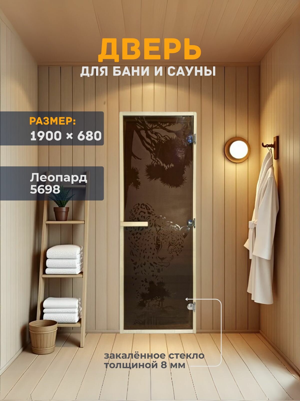 Дверь для бани/сауны 1900х680 8мм Леопард 5698 информация: