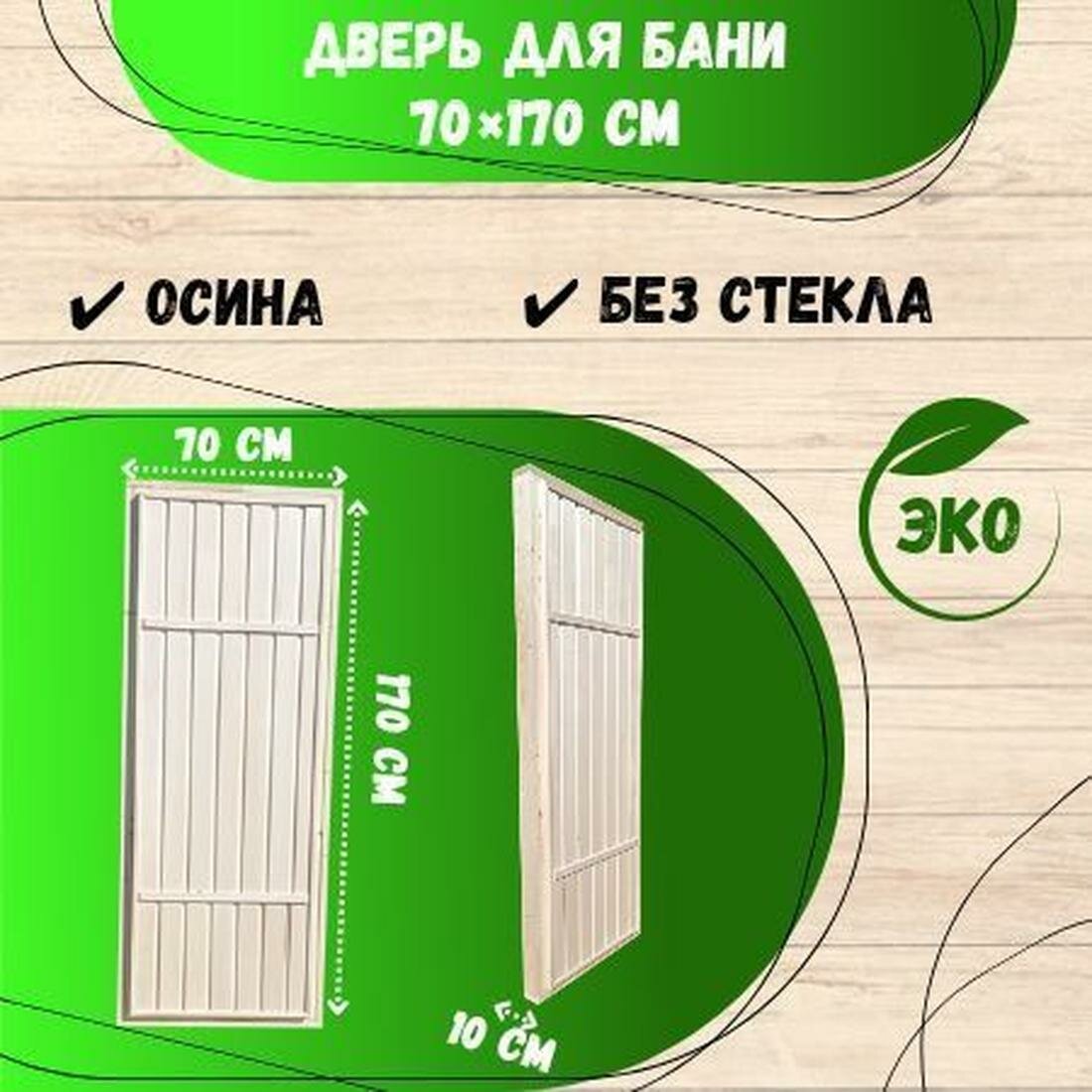 Дверь для бани и сауны без стекла 70х170, осина, дверь в парную деревянная глухая с коробкой информация: