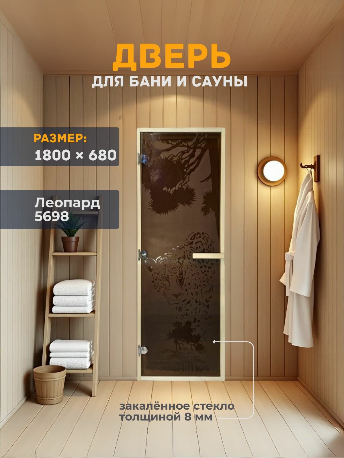 Дверь для бани/сауны 1800х680 8мм Леопард 5698 информация: