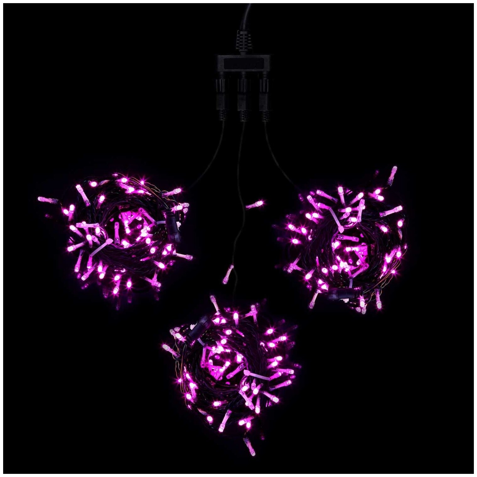 Комплект 3 Розовых Нити по 20м, 600 LED, Провод Черный ПВХ, IP54 (Laitcom) 10 290 ₽