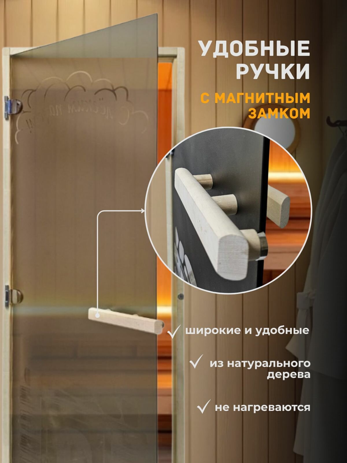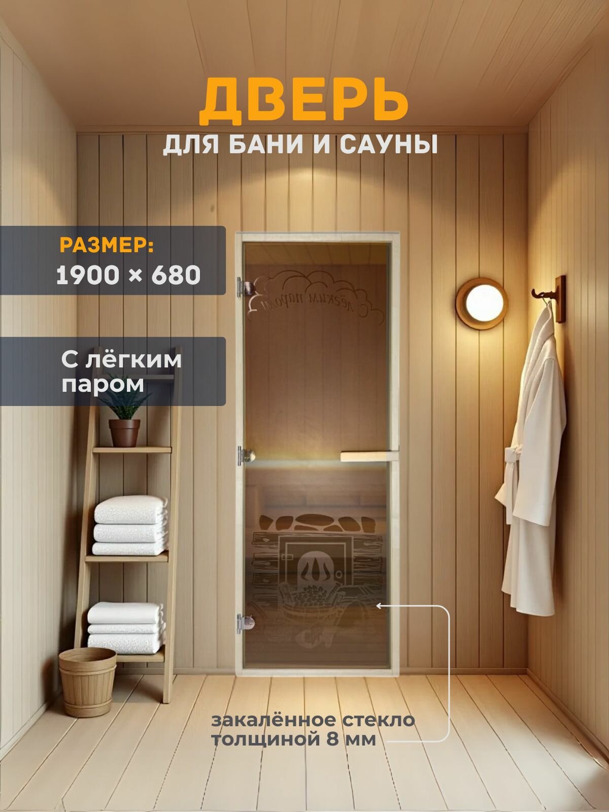 Дверь для бани/сауны 1900х680 8мм С легким паром пескоструй информация: