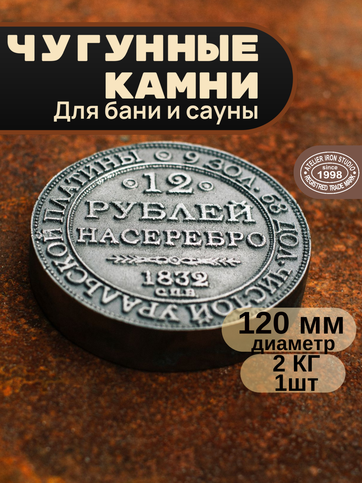 Камни для бани и сауны "12 рублей на серебро" монета из чугуна, D-90мм, 1 шт информация: