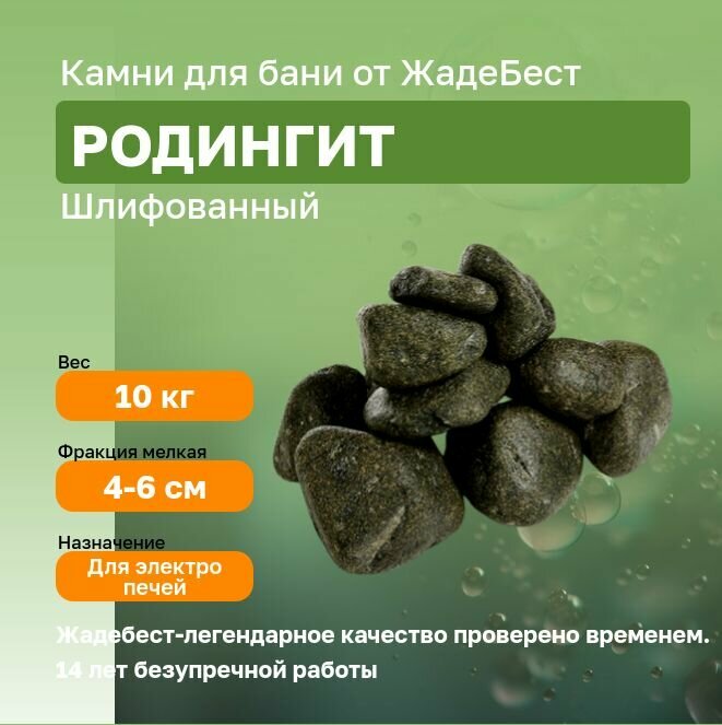 Родингит шлифованный мелкий Жадебест для бани и сауны, 10 кг информация: