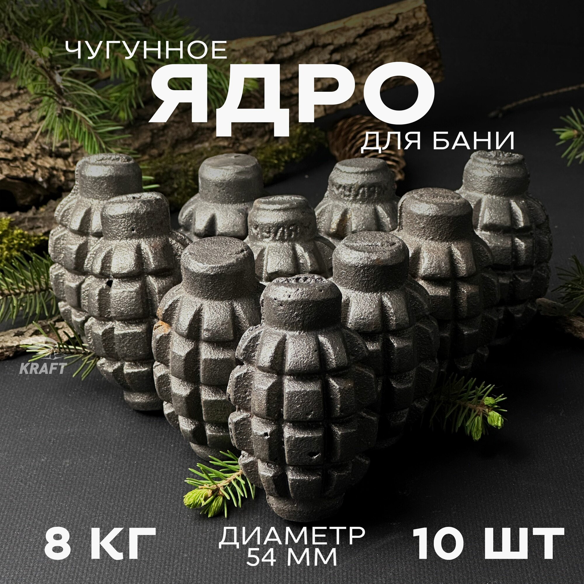 Ядра чугунные для банной печи, камни для бани, 8 кг 10 штук, граната Ф1 информация: