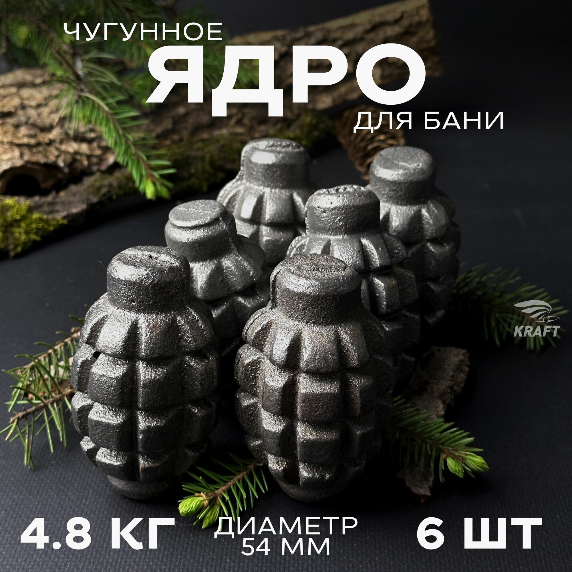Ядра чугунные для банной печи, камни для бани, 4.8 кг 6 штук, граната Ф1 информация: