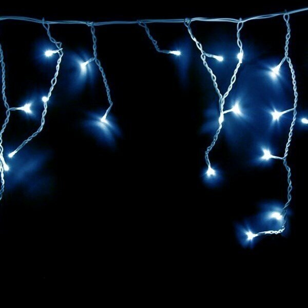 Гирлянда Айсикл (бахрома) светодиодный, 4,0 х 0,6 м, белый провод "каучук", 230 В, диоды синие, 128 .