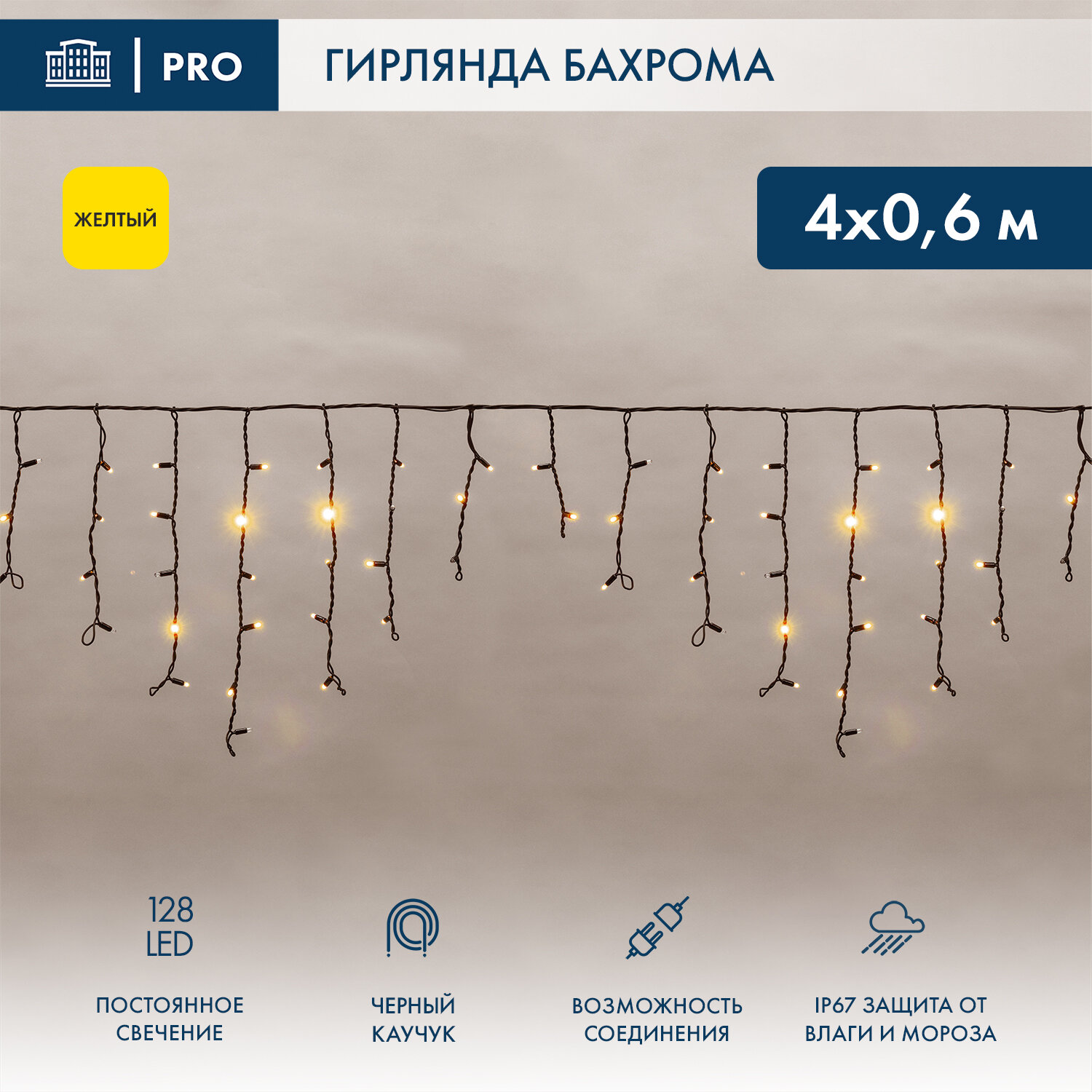 NEON-NIGHT Гирлянда Айсикл (бахрома) светодиодный, 4,0 х 0,6 м, черный провод "каучук", 230 В, диоды желтые, 128 LED NEON-NIGHT 4 515 ₽