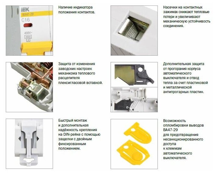 Выключатель IEK автоматический однополюсный 50А С ВА47-29 4.5кА (арт. MVA20-1-050-C) информация: