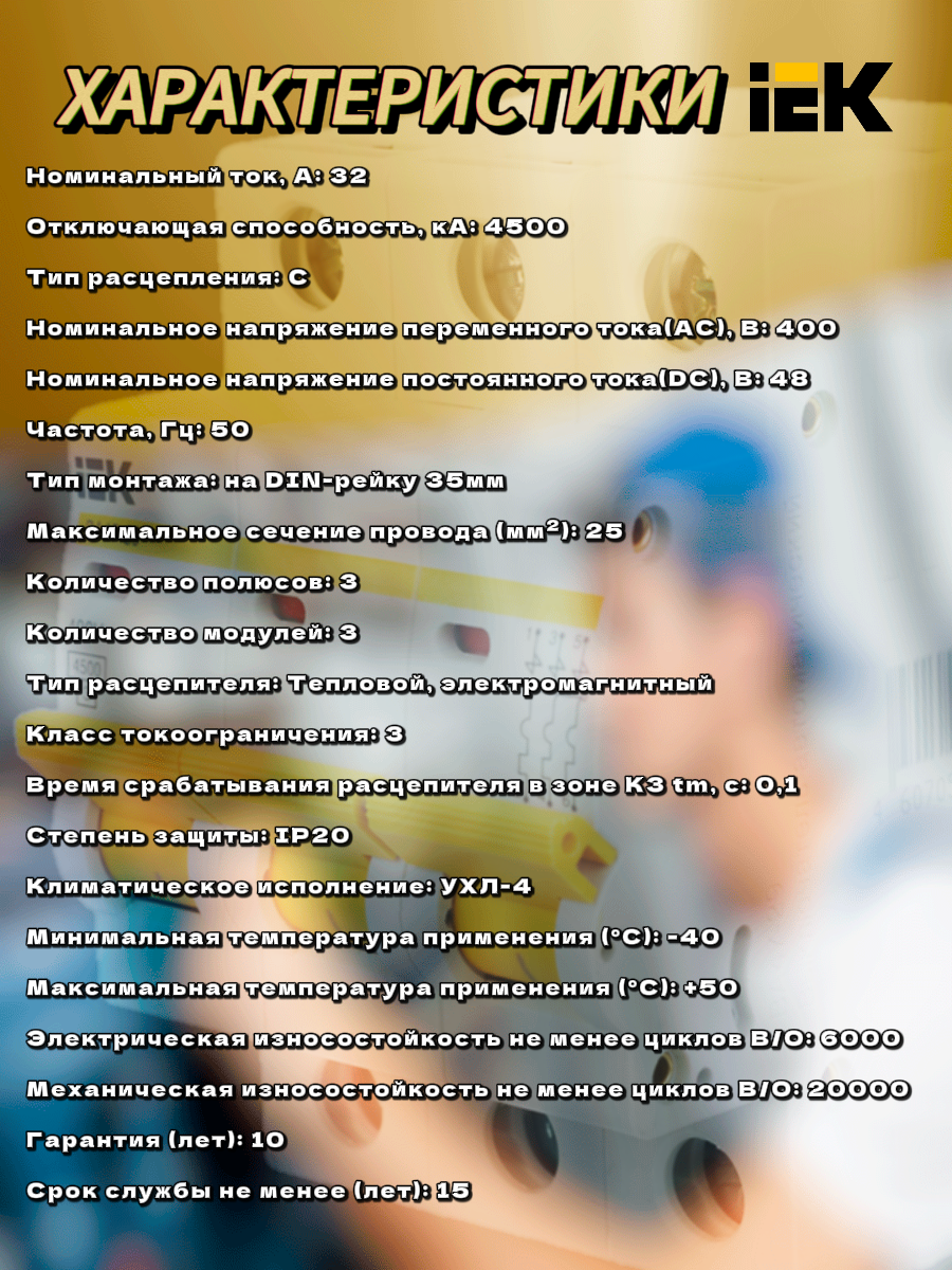 Отзывы на Автоматический выключатель 3Р 32А (С) ВА47-29 4.5кА IEK, MVA20-3-032-C