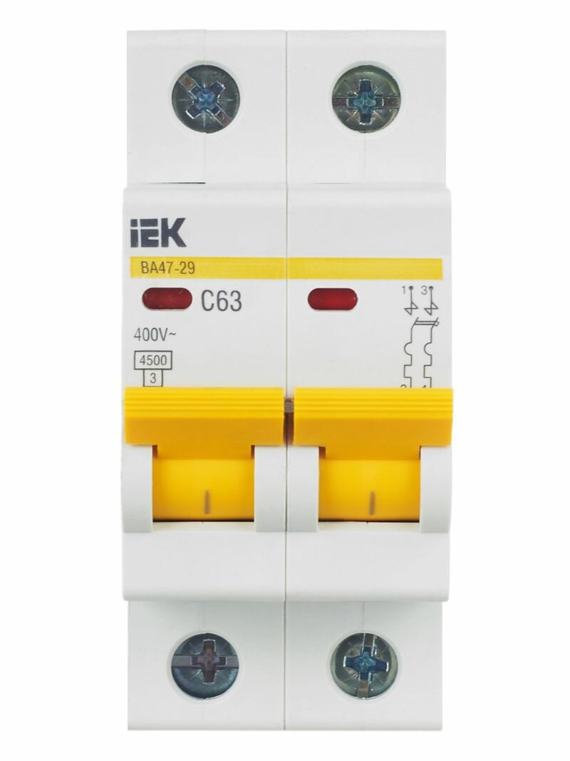 Автоматический выключатель 2-пол. 63А тип С 4,5кА серия ВА 47-29 MVA20-2-063-C IEK (ИЭК) информация: