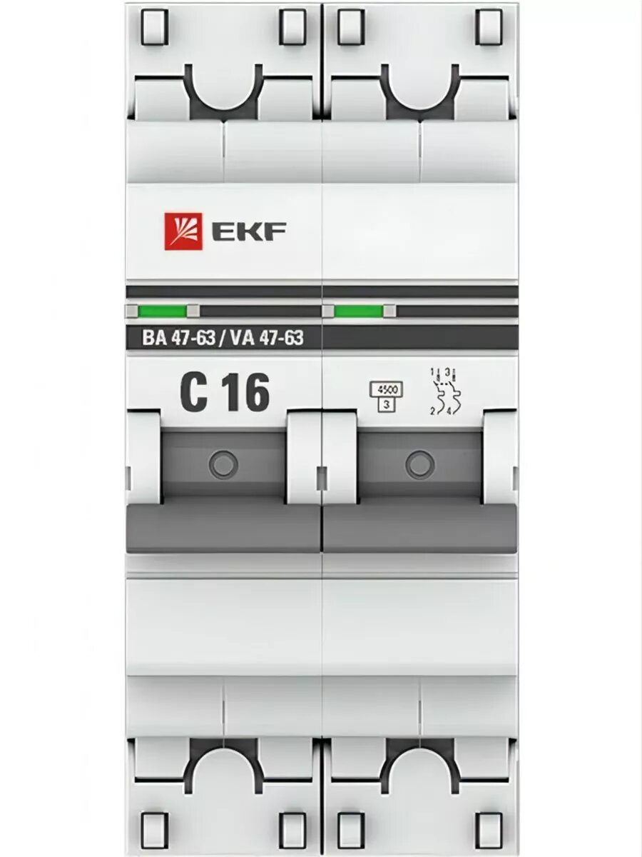 Автоматический двухполюсный выключатель EKF Prox 16A C информация: