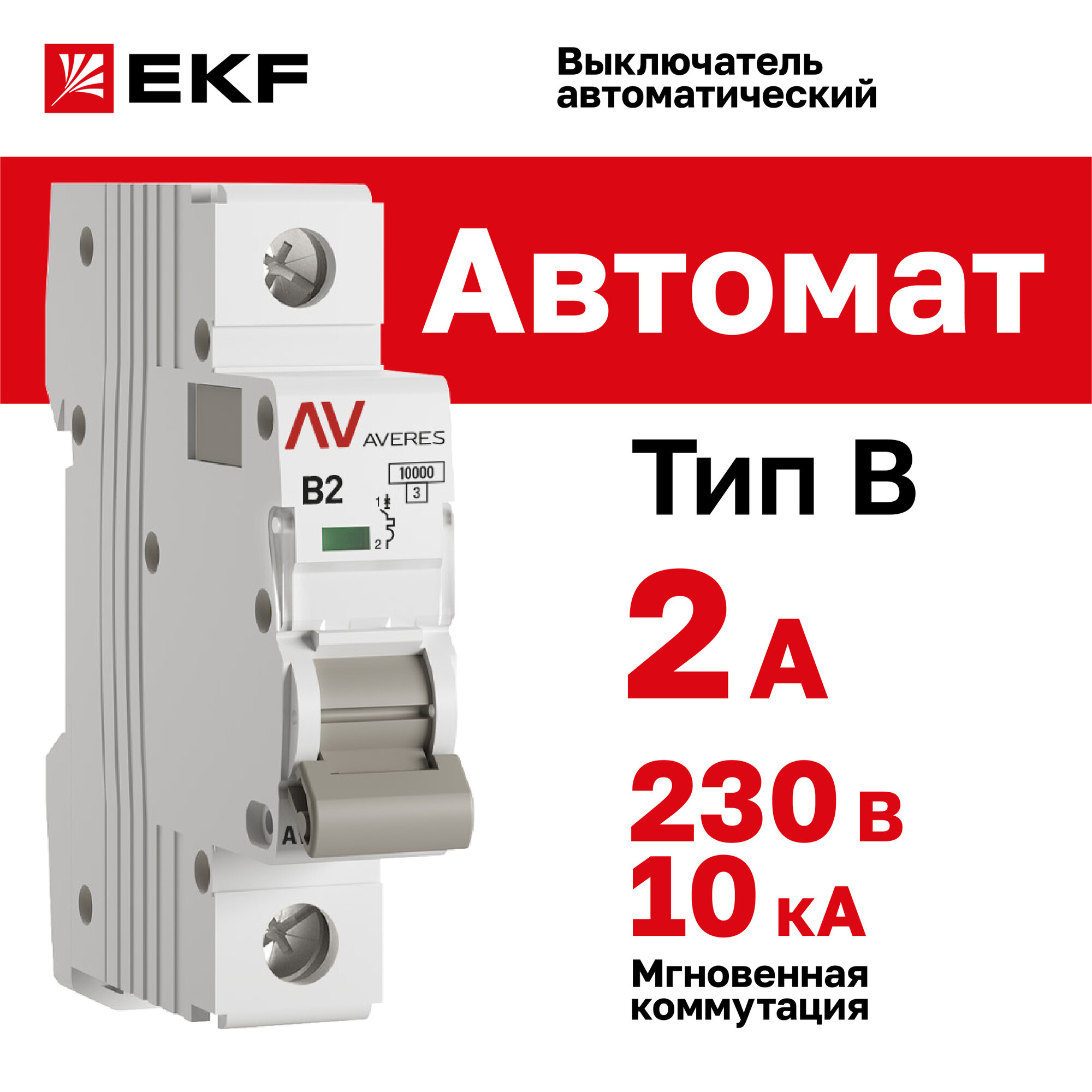 Выключатель автоматический EKF AVERES AV-10 1P 2A (B) 10kA - 1 шт. информация: