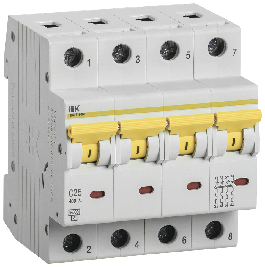 Автоматический выключатель ВА47-60M 4Р, 25А, 6кА, С IEK MVA31-4-025-C (1 шт.) информация: