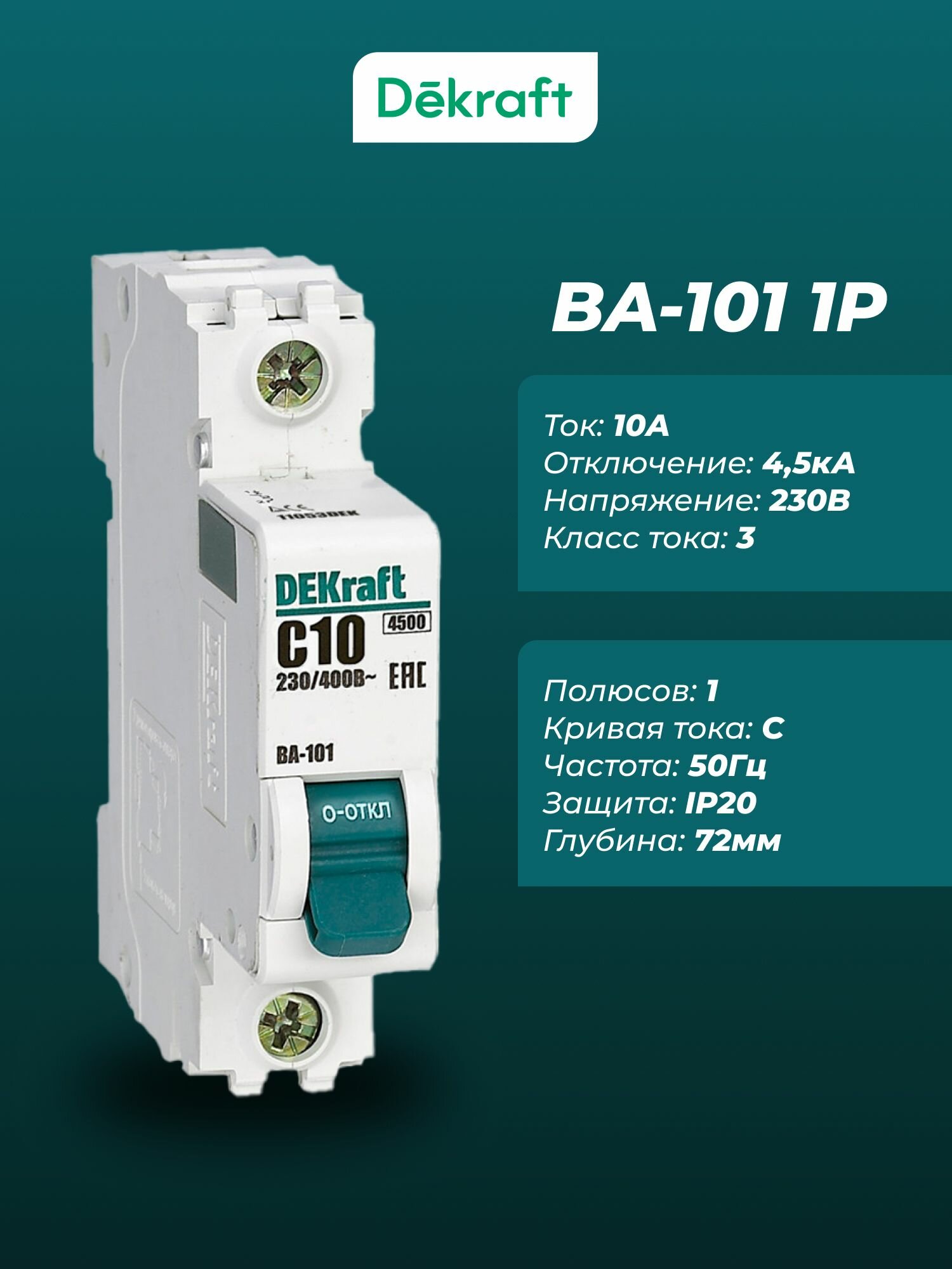 10 цен на Автоматический выключатель DEKraft, 10А, тип C, однополюсный