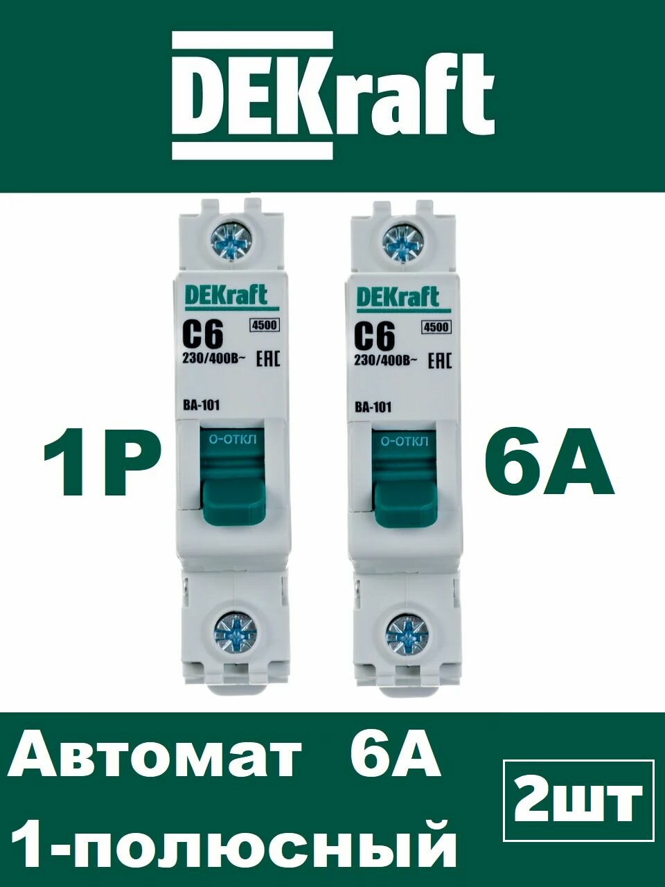 Выключатель автоматический 6А 1-пол тип C 4,5кА ВА-101 DeKraft, 2шт информация: