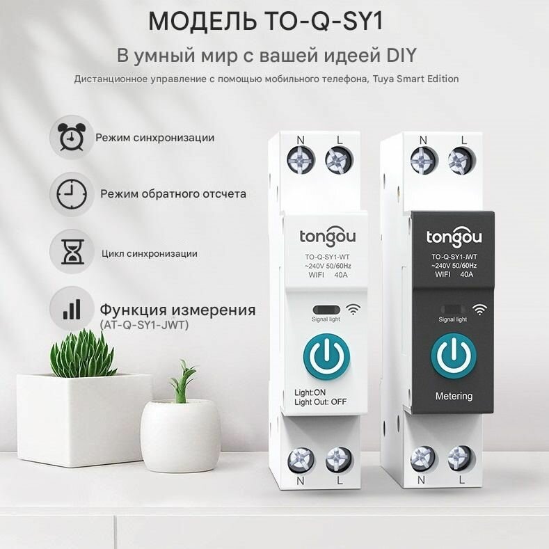 Умный автоматический выключатель TONGOU TO-Q-SY2-163JWT, 1-63A adjustable