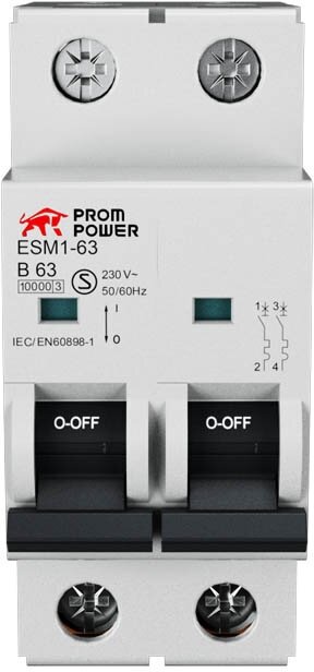 Автоматический выключатель Prompower ESM2-63/C10/2 (6kA), 10A, характеристика C, количество полюсов: 2P информация: